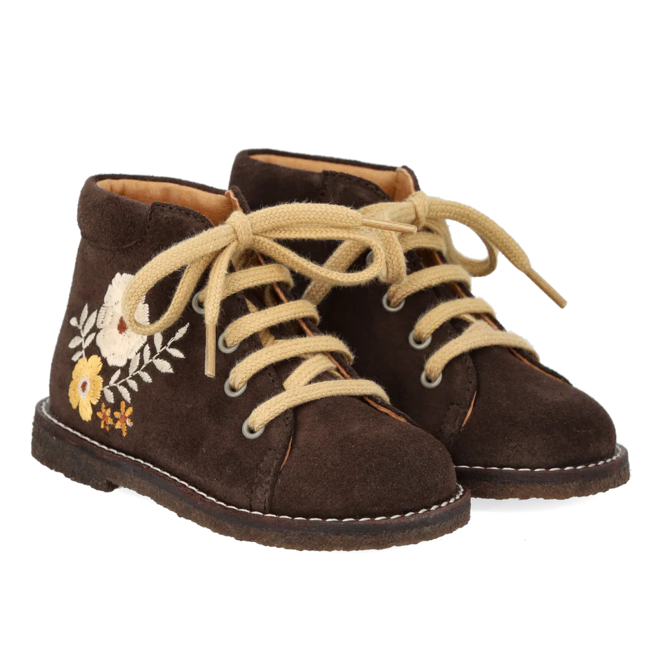 Angulus Dark Brown Embroidered Lace Baby Shoe – HAL Shoes