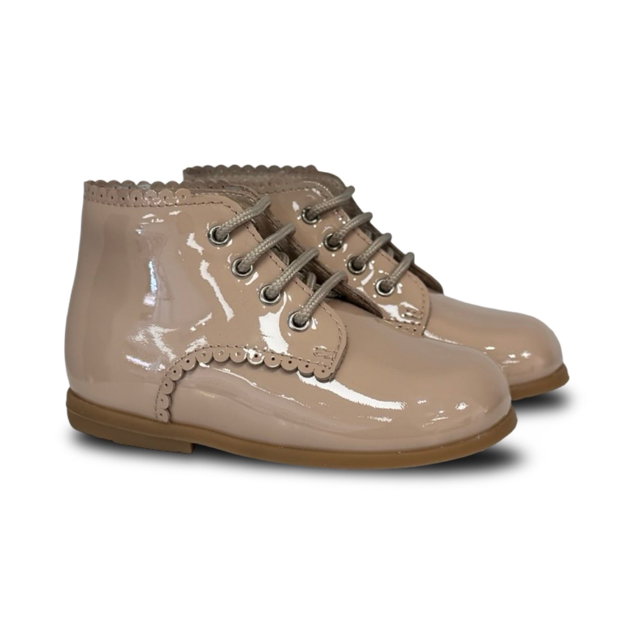 Beberlis Nude Patent Scalloped Lace up Baby Bootie – HAL Shoes
